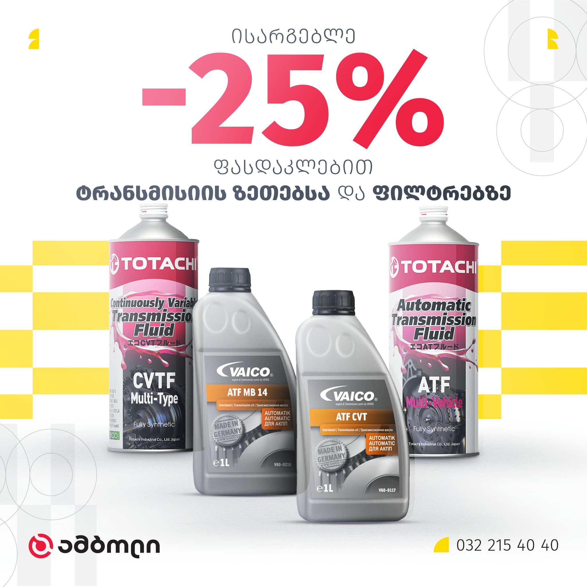 რაც შეეხება ზეთებს, შეცვალე ძრავის ზეთი 25%-იანი ფასდაკლებით!