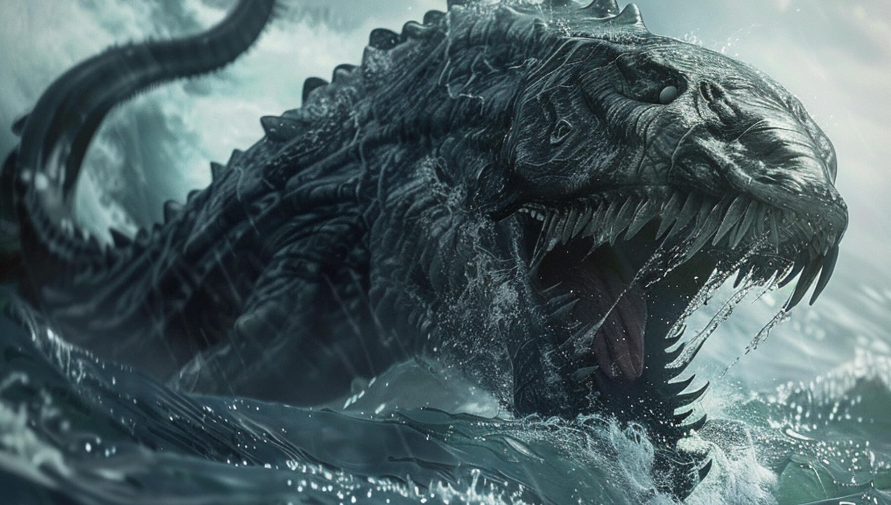 თუმცა უეცრად, წყნარ ზღვას თითქოს მეხი ეცემა და მოულოდნელად, მუქი ქაფის და შხეფების კორიანტელში, წყლის სიღრმიდან უშველებელი მონსტრი ამოდის. მისი სხეული მთლიანად ფარავს მზის სინათლეს და წამიერად სრული სიბნელე ისადგურებს. ურჩხული პირდაპირ წყვილისკენ მიემართება. მამაცი მეზღვაური ელვის სისწრაფით, მთელი ძალით ისვრის გოგონას სანაპიროს სიღრმისკენ, თავად კი გმირულად ეკვეთება საშინელ არსებას...