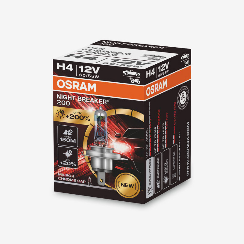 OSRAM Night Breaker 200 H4 12V 60/55W (ნათურა ჰალოგენი) 1 ცალი