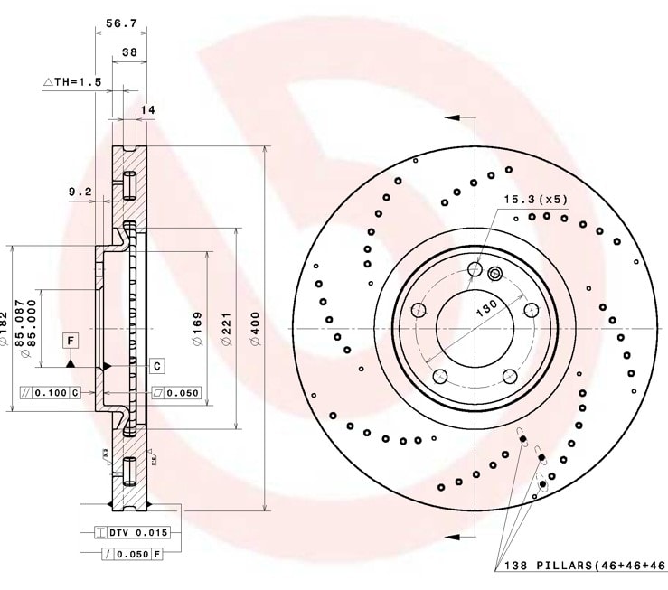 BREMBO 09887331 92134505 (წინა სამუხრუჭე დისკი)