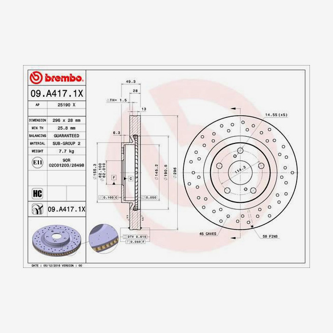 BREMBO 09A4171X 92168803 (წინა სამუხრუჭე დისკი)